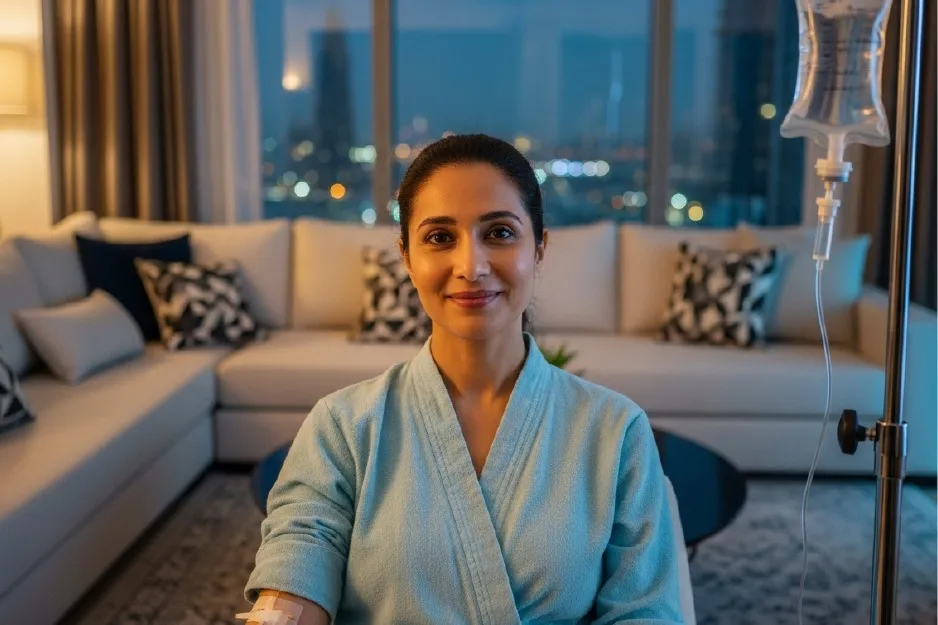 We bring the recovery to you. Our IV therapy comes straight to your home, hotel, or office in Dubai. No travel, no waiting rooms; just comfortable, effective treatment where you're most relaxed.