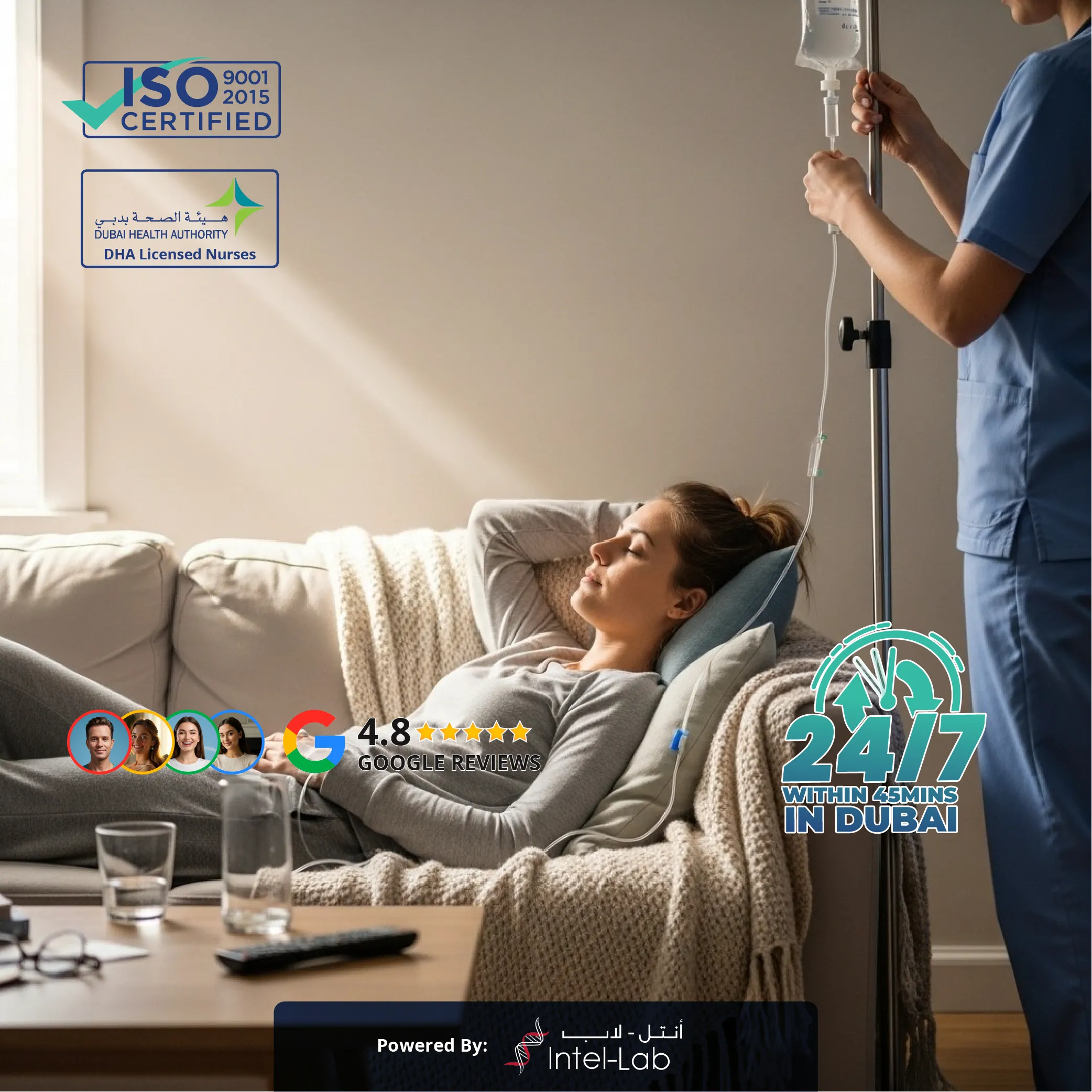 We are proud of our partnership with Dubai’s oldest and most credible, for over 20 years, medical laboratory, Intel Lab. Our exclusive partner warrants the credibility and accuracy of our results while we warrant the compliance on sample collection and transportation. We together ensure that your results are credible while also being delivered without intermediaries that can hurt quality.
